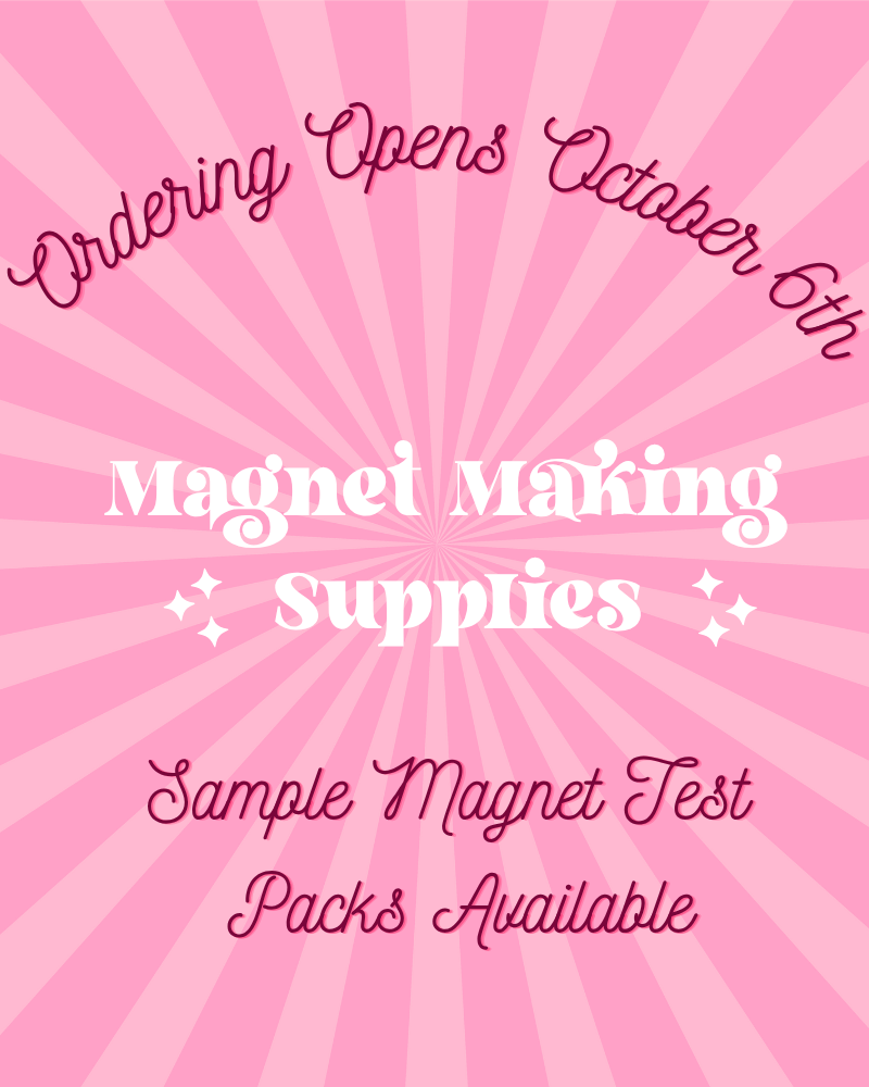 Orders for Fridge Flair™ magnet making supplies will open for ordering SOON! In the meantime, you can order a Sample Test Pack to try our supplies with your machine. Currently, we have test packs for the 2"x2" and 2.5"x3.5" sizes (will be adding more soon!)